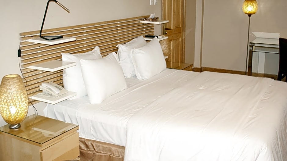 Double Deluxe is 86 square feet and includes a king-size bed 150-183 width plus terrace, desk, satellite tv , cable tv, tea and coffee making facilities , safe, bathrobes, and slippers and is Wheelchair-accessible with a Disability-friendly bathroom.
